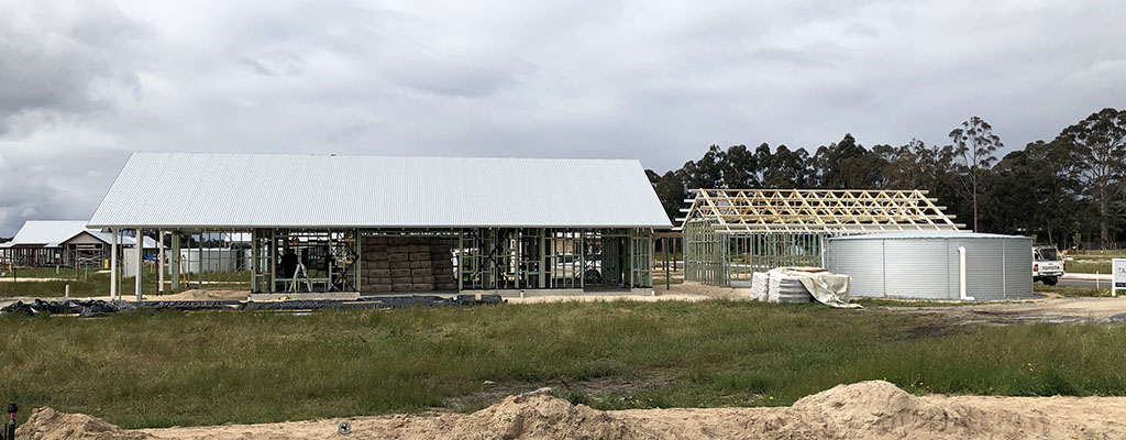 There are now 48 homes in various stages of construction. Roofs and cladding materials are emerging as the built landscape starts to take shape. Most homes are being built in traditional timber framing, but the first of several hemp homes are underway, as well as a few straw bale and reverse brick veneer houses.