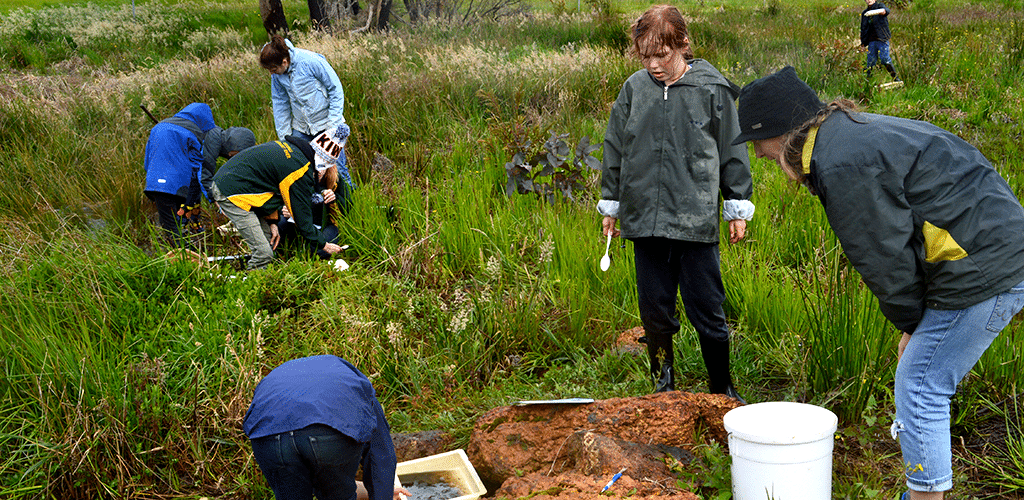 Education header image Published 05/09/2019 at 1024 × 500 in Education header image Kids from Margaret River Independent School conducting water monitoring along the Ecovillage creek line. ← Previous Next →