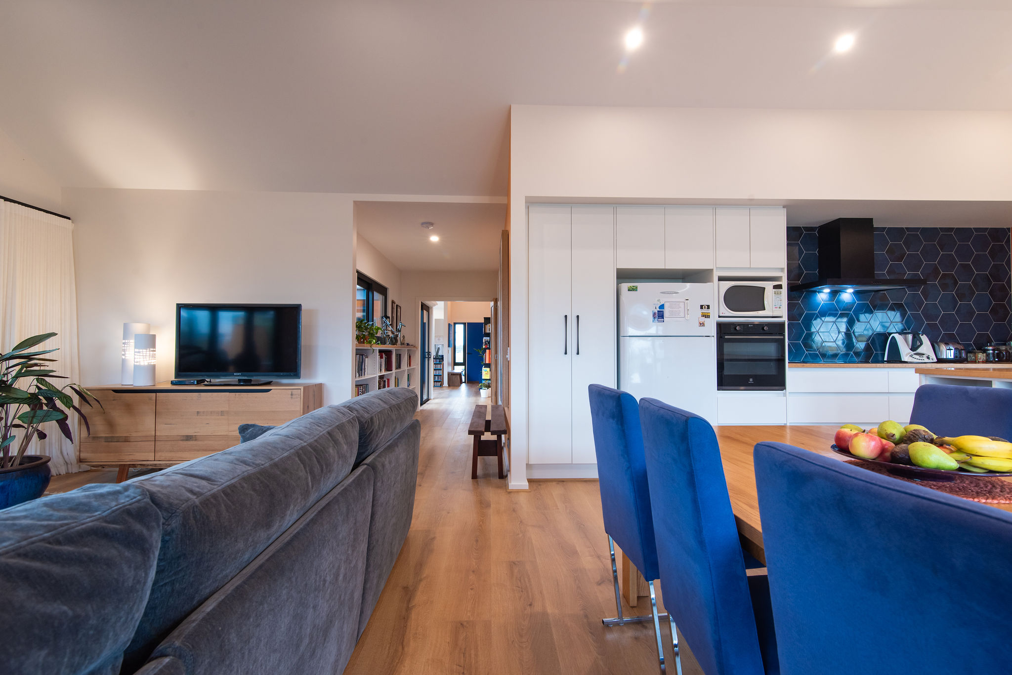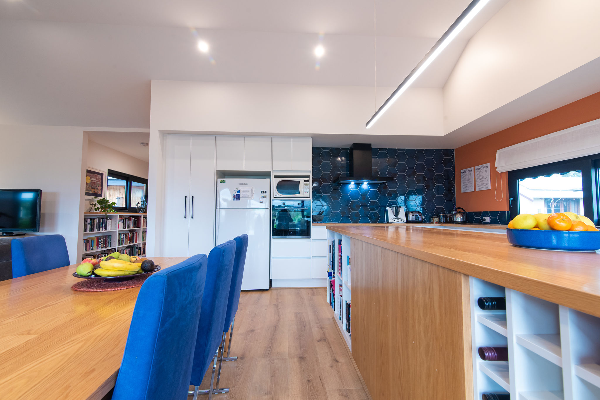 - Large, well-equipped kitchen with abundant storage featuring American White Oak benchtops