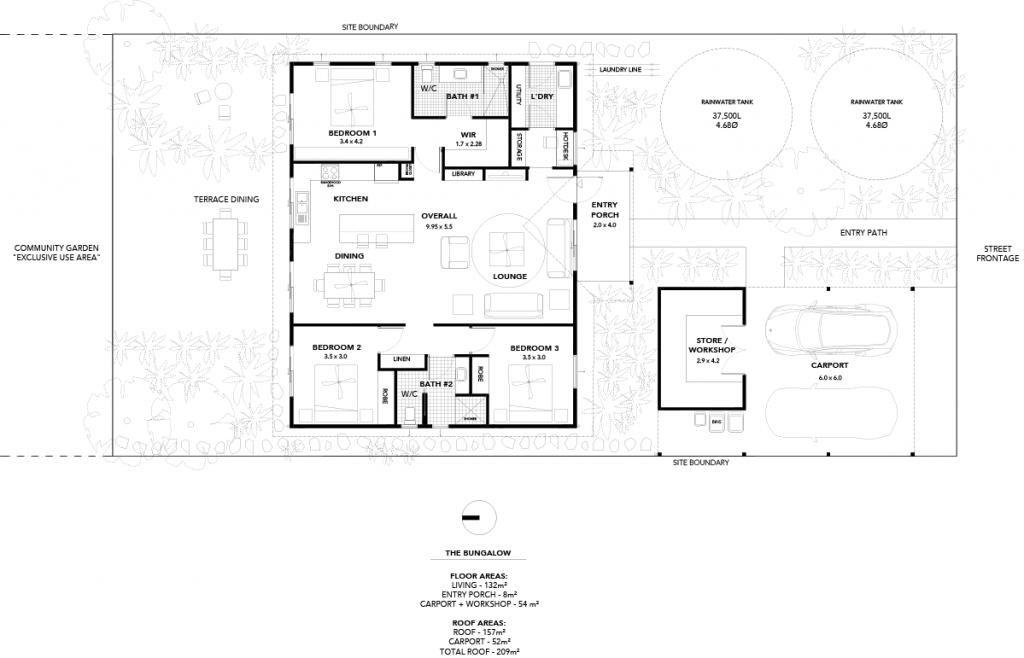 Designed in-house by the Ecovillage Design Team, this home can be built in a range of structural options including timber, hempcrete or reverse brick veneer by any builder of your choice. Your choice of structural material is the main driver of price.