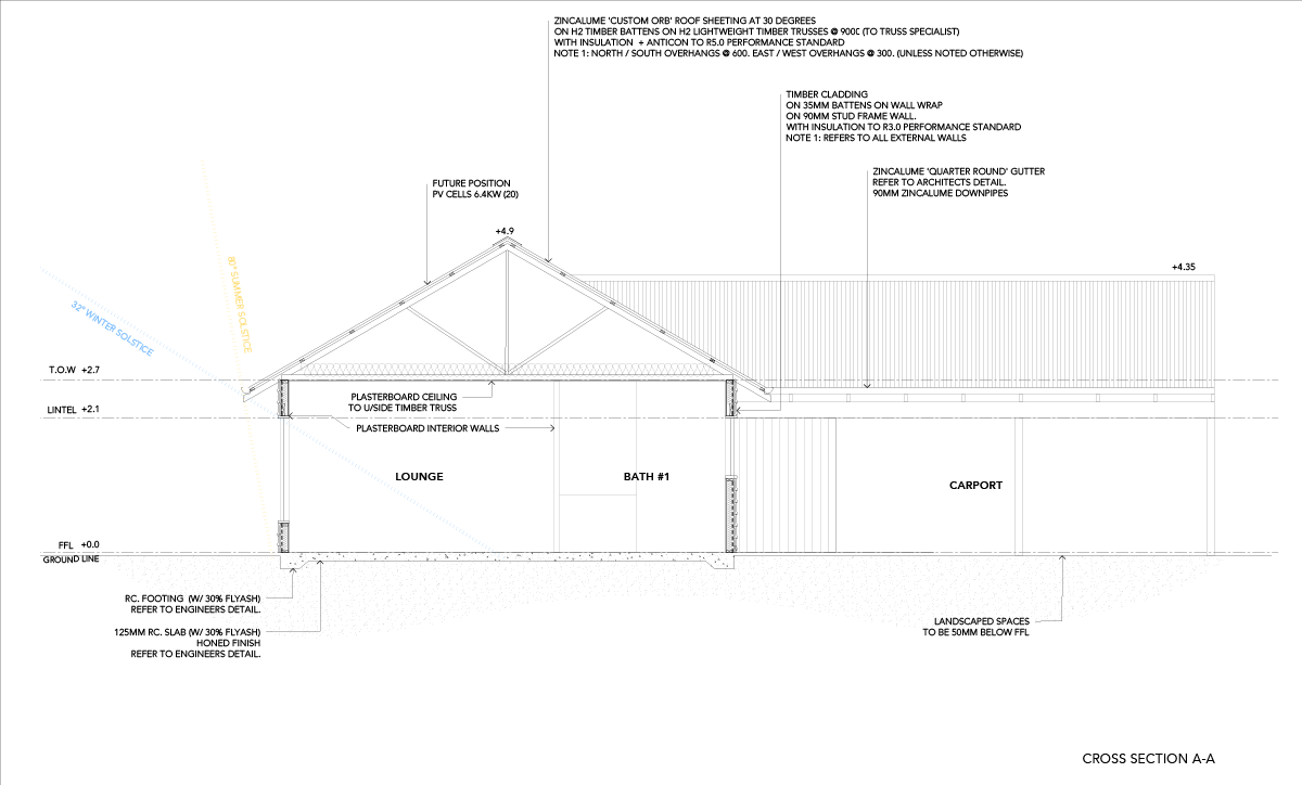 Designed in-house by the Ecovillage Design Team, this home can be built in a range of structural options including timber, hempcrete or reverse brick veneer by the builder of your choice. Your choice of structural material is the main driver of price.