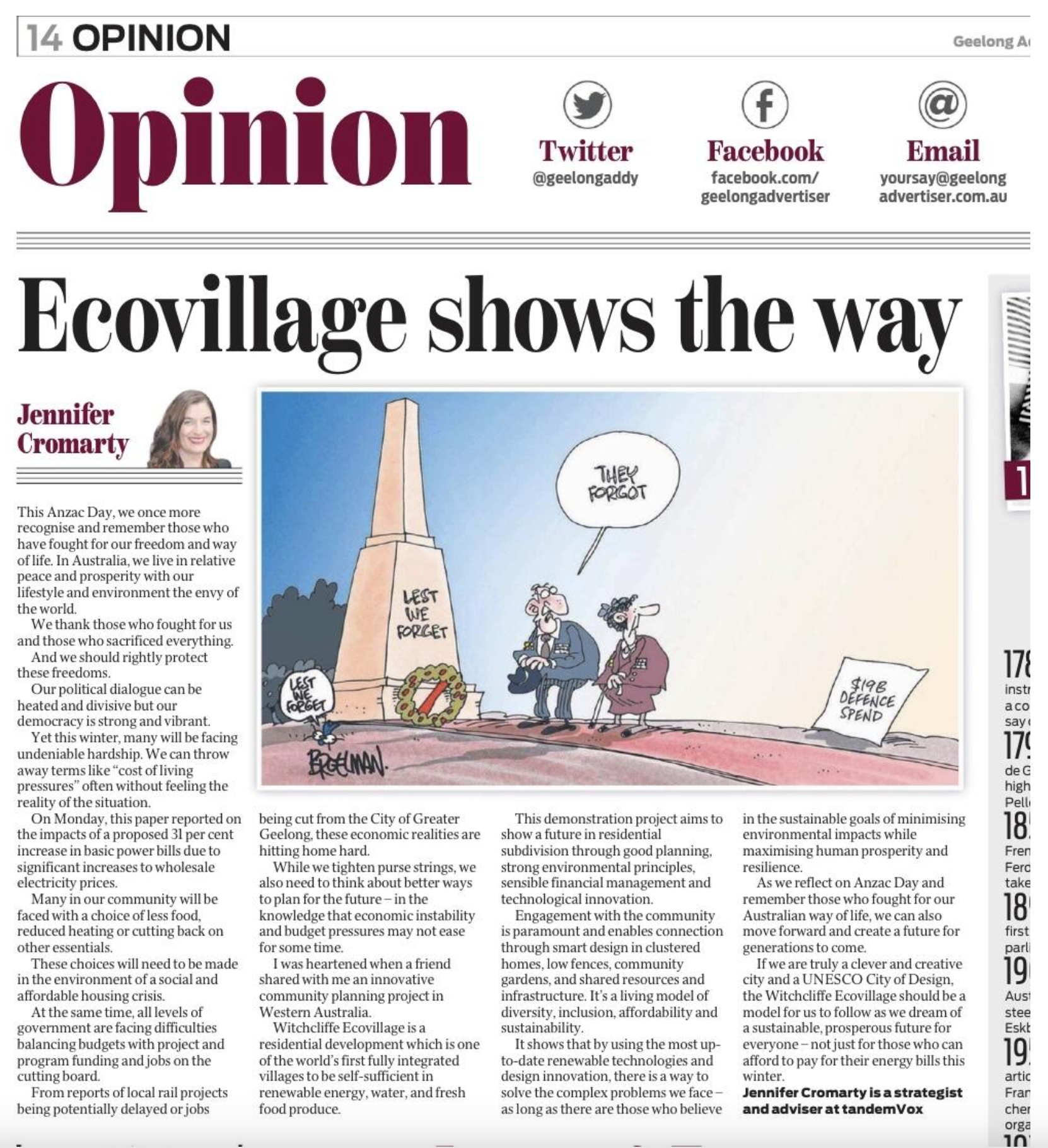 Opinion piece in the Geelong Advertiser newspaper by Jennifer Cromarty, a strategist and adviser at TandemVox.