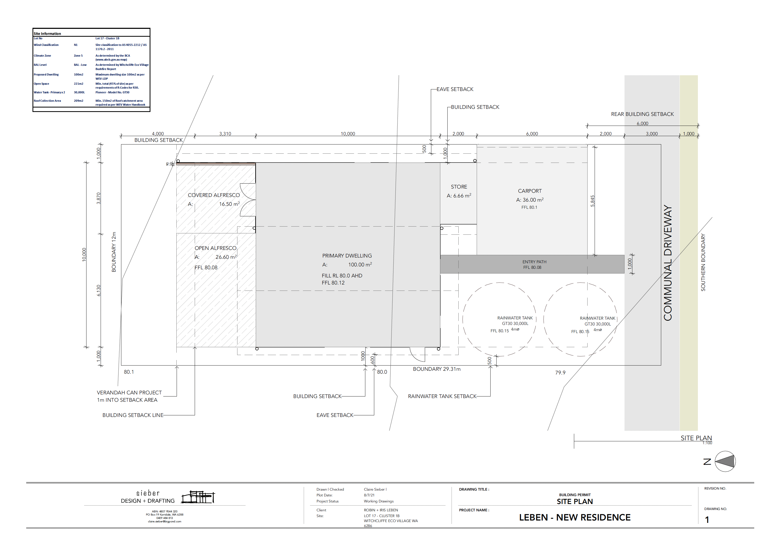 - Access to all of the shared amenity of the 1B cluster gardens—Jarrah clad meeting house, picnic lawn area and shade trees, children’s sand pit and slide, shared netted fruit orchard and chook pen, Tritium EV fast charger, etc.