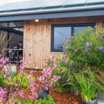 Landscaped waterwise gardens, fruit tree orchard, outdoor shower