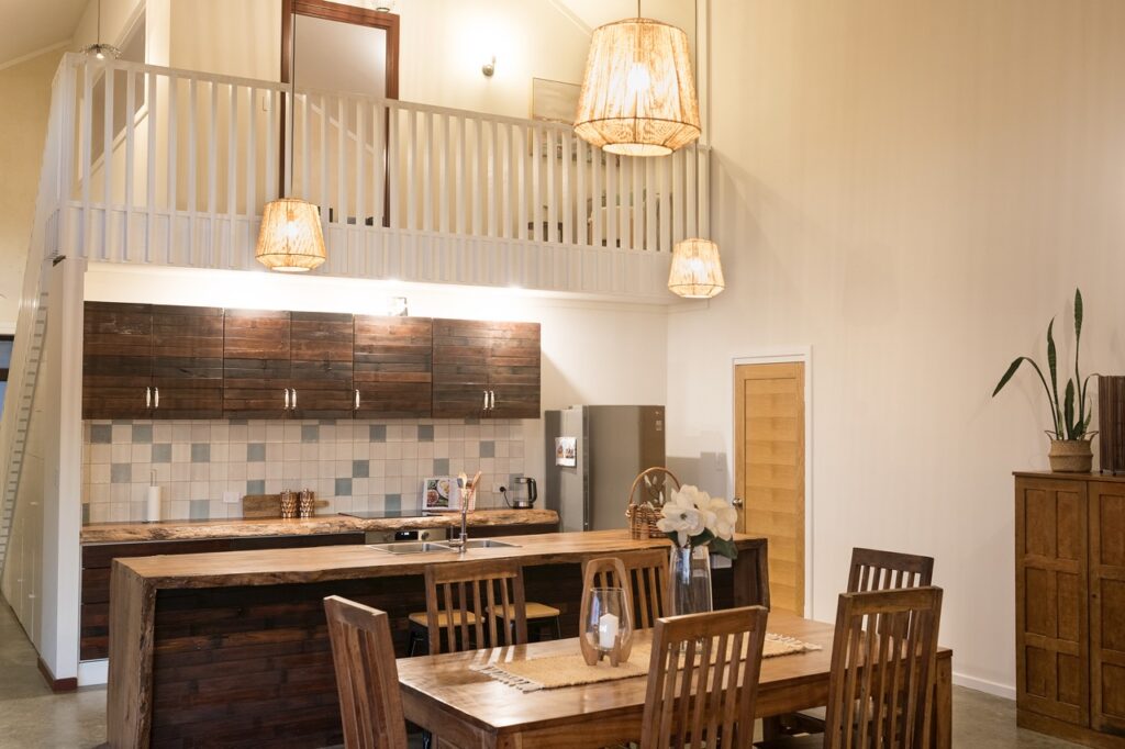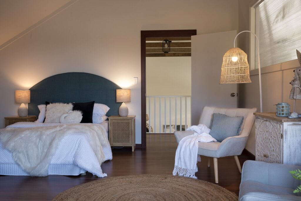 - Generous built-in storage throughout the home: main bedroom, guest bedroom, loft bedroom/office, hallway, pantry/scullery, mudroom
