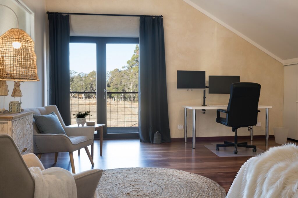- Jarrah timber flooring to stairs, loft bedroom/office and internal balcony overlooking the living room