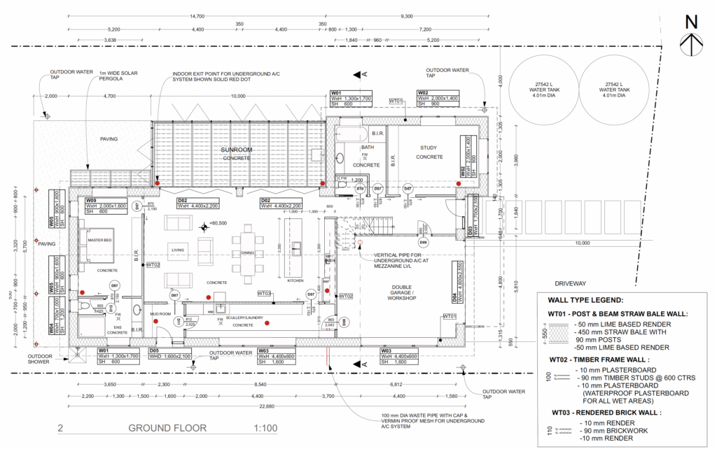 - Passive solar design, strawbale construction