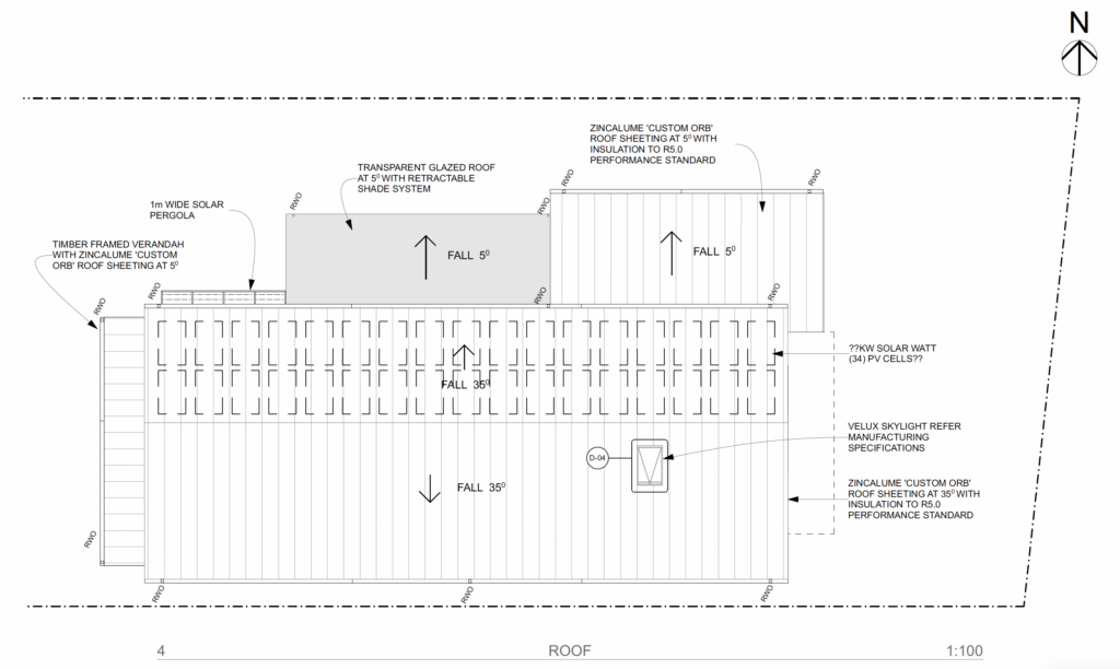 - North-facing outdoor living with recycled brick paving edging and retractable shade sails